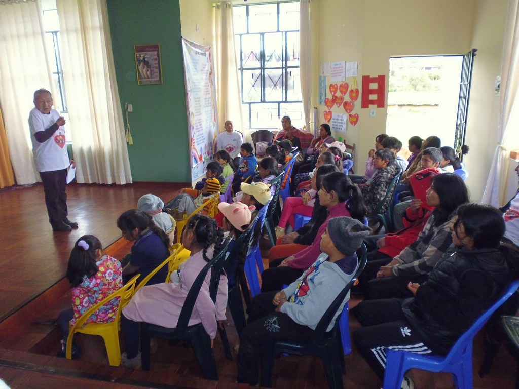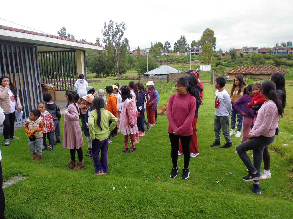 Los niños fueron agrupados en tres aulas, cada una con un enfoque particular: «Amor», «Fe» y «Paz». Nuestro más sincero agradecimiento a la Prof. Liz Pariona, quien estuvo al frente del aula «Amor», destinada a los más pequeños de 3 a 6 años; a la Prof. Helen Samaniego, quien guio con sabiduría a los niños de 7 a 9 años en el aula «Fe»; y a los profesores Iliana Cárdenas y Hugo Pariona, quienes, con gran compromiso, lideraron el aula «Paz» para los jóvenes de 10 a 13 años.