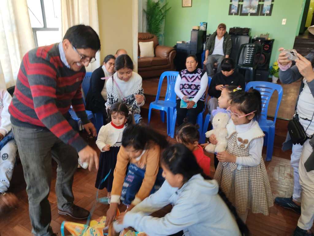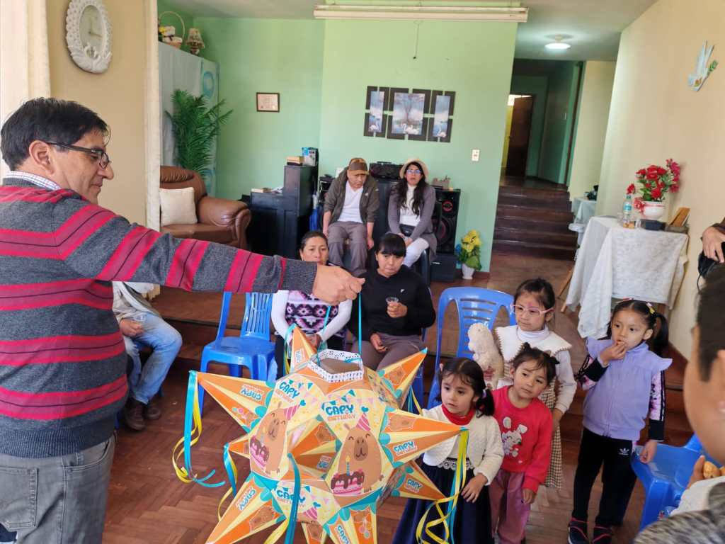 Posteriormente, se dio inicio a la parte recreativa. Los niños participaron con entusiasmo en el tradicional juego de la piñata, que llenó de emoción y sonrisas el ambiente. Después, todos compartieron un delicioso refrigerio que incluyó bocaditos, golosinas y refrescos, preparados con cariño por los hermanos de la congregación. Fue un momento de comunión en el que los más pequeños se sintieron valorados y celebrados.